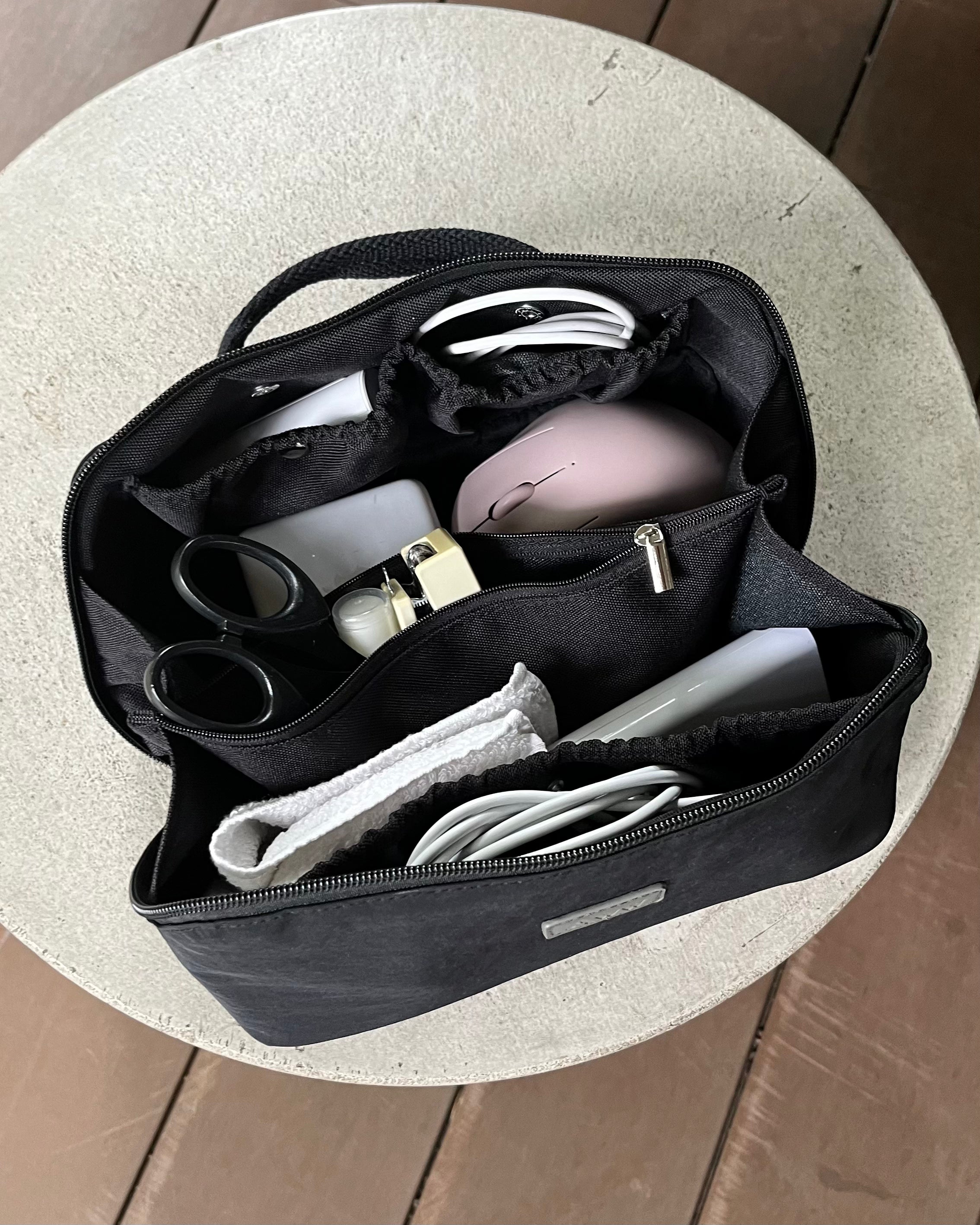 化粧品や洗面道具はもちろん、ガジェットなどの仕分けや車やお部屋での小物入れにもおすすめです。