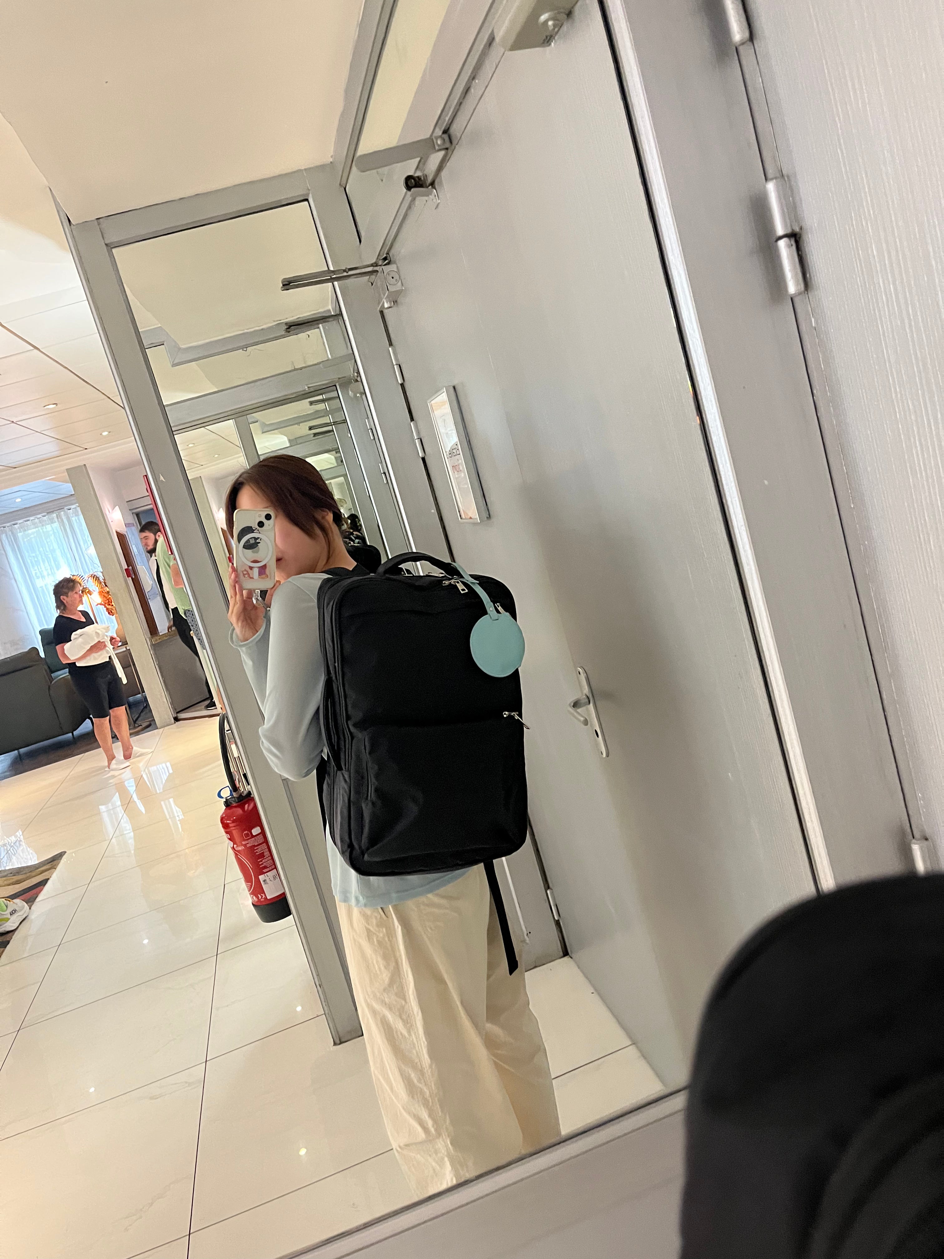 また、肩紐を綺麗に隠すことができるので、バックパックとしてはもちろん、手持ちバックとしても使っていただけます。もちろんキャリーバーに通せるデザインで、スーツケースの上にのせてそのまま移動ができ、旅の必須アイテムになりそうです。