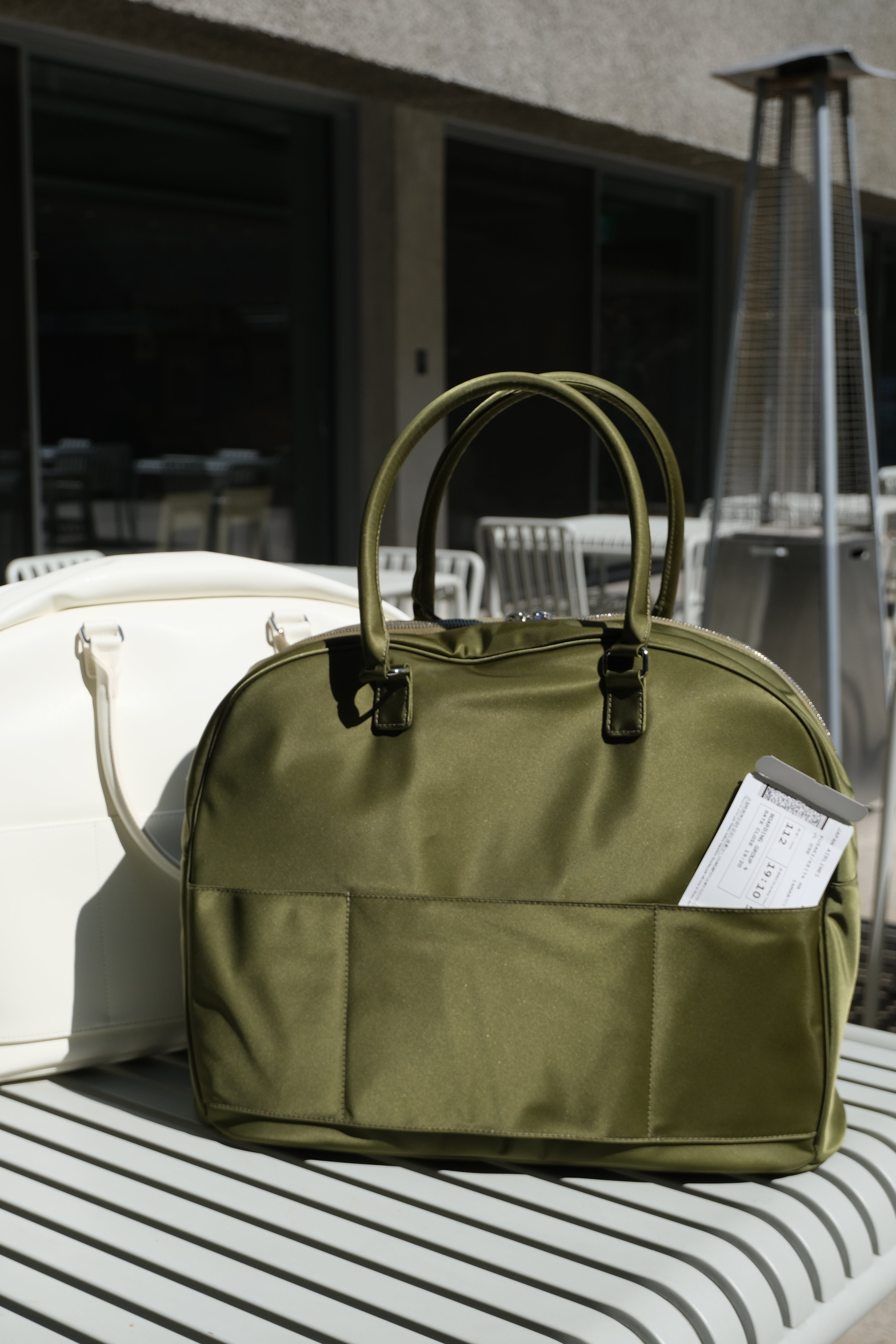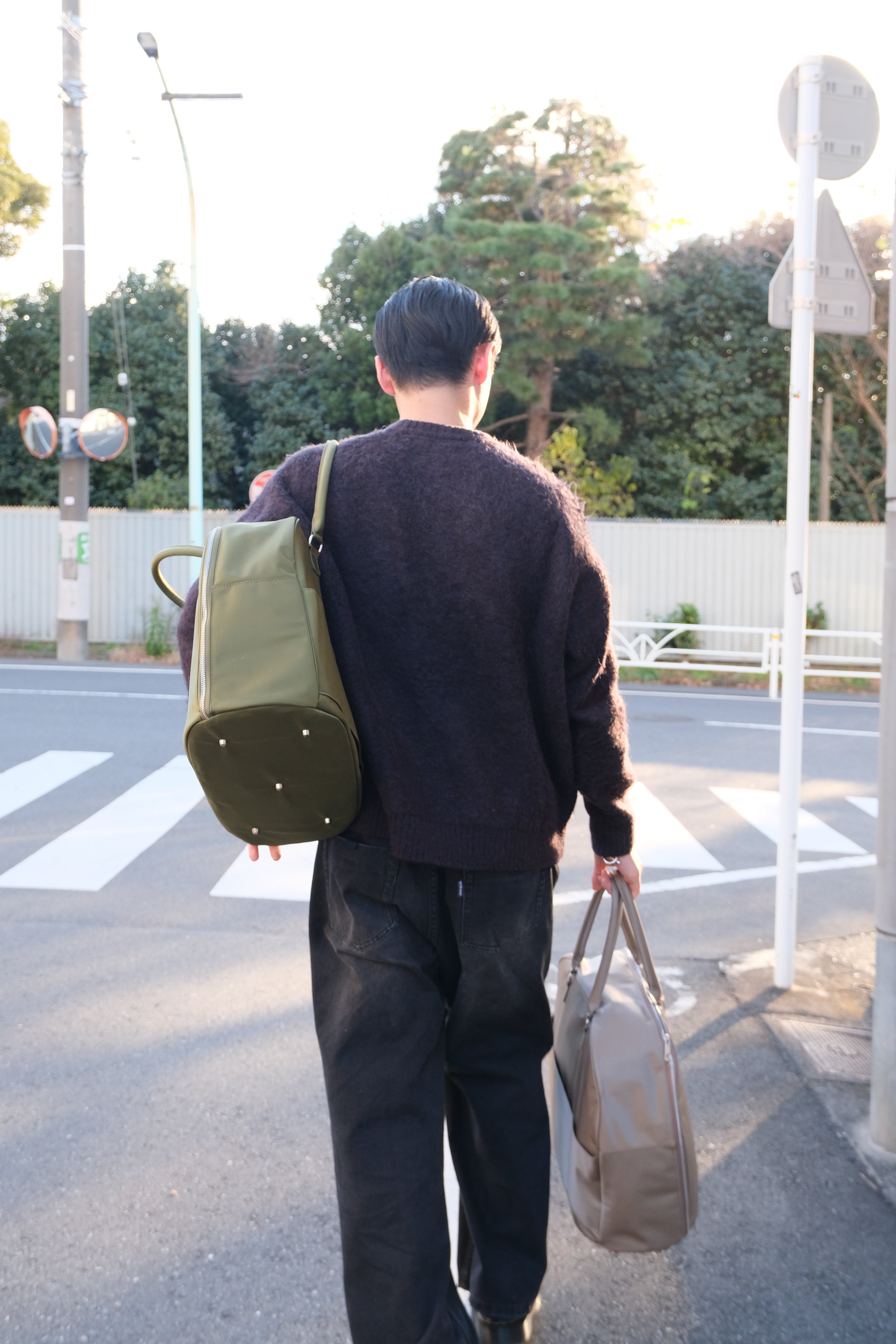 背面に2つのポケットを配置。底鋲が地面との接触を防ぎ、大切なバッグを汚れや摩耗から守ります。