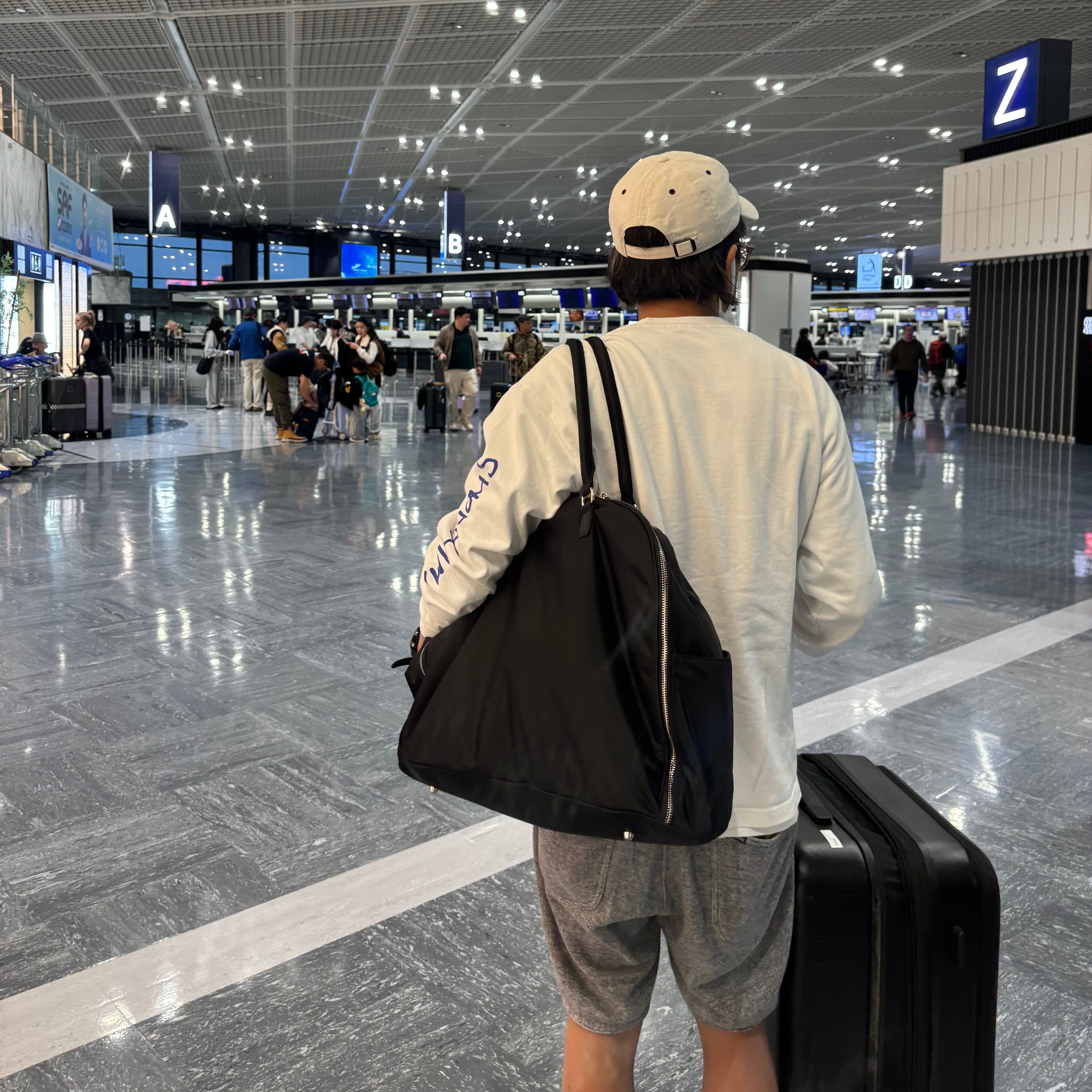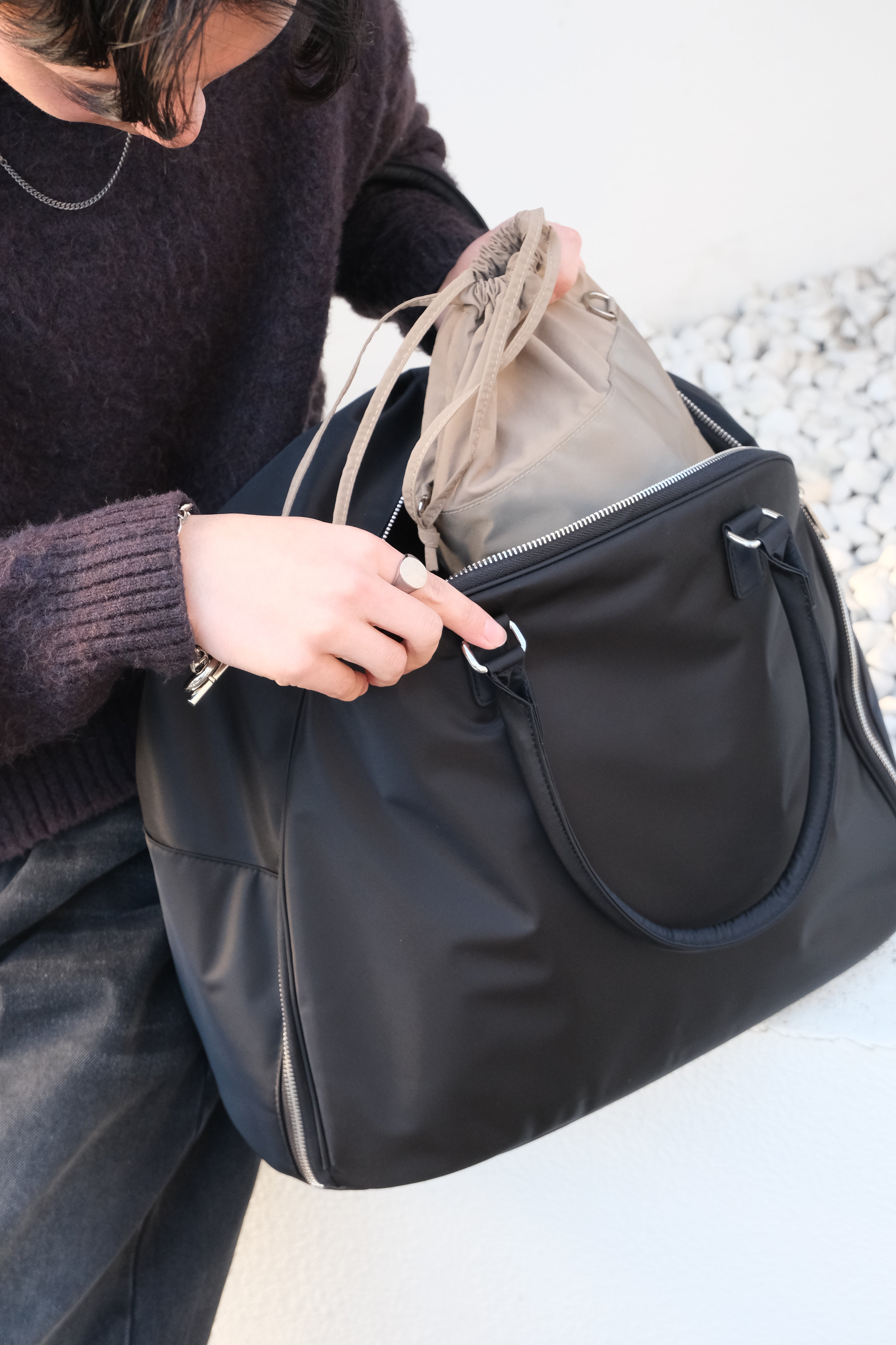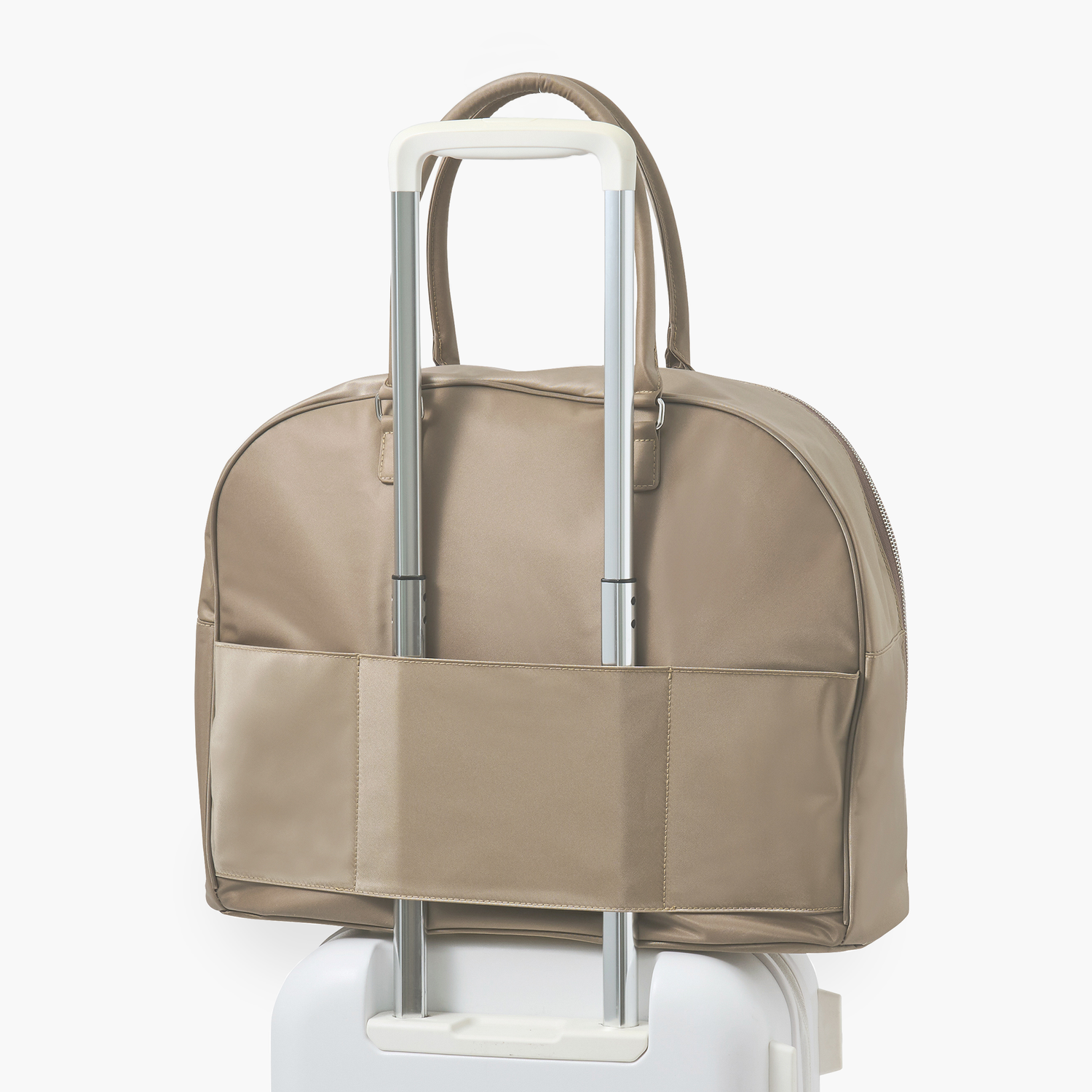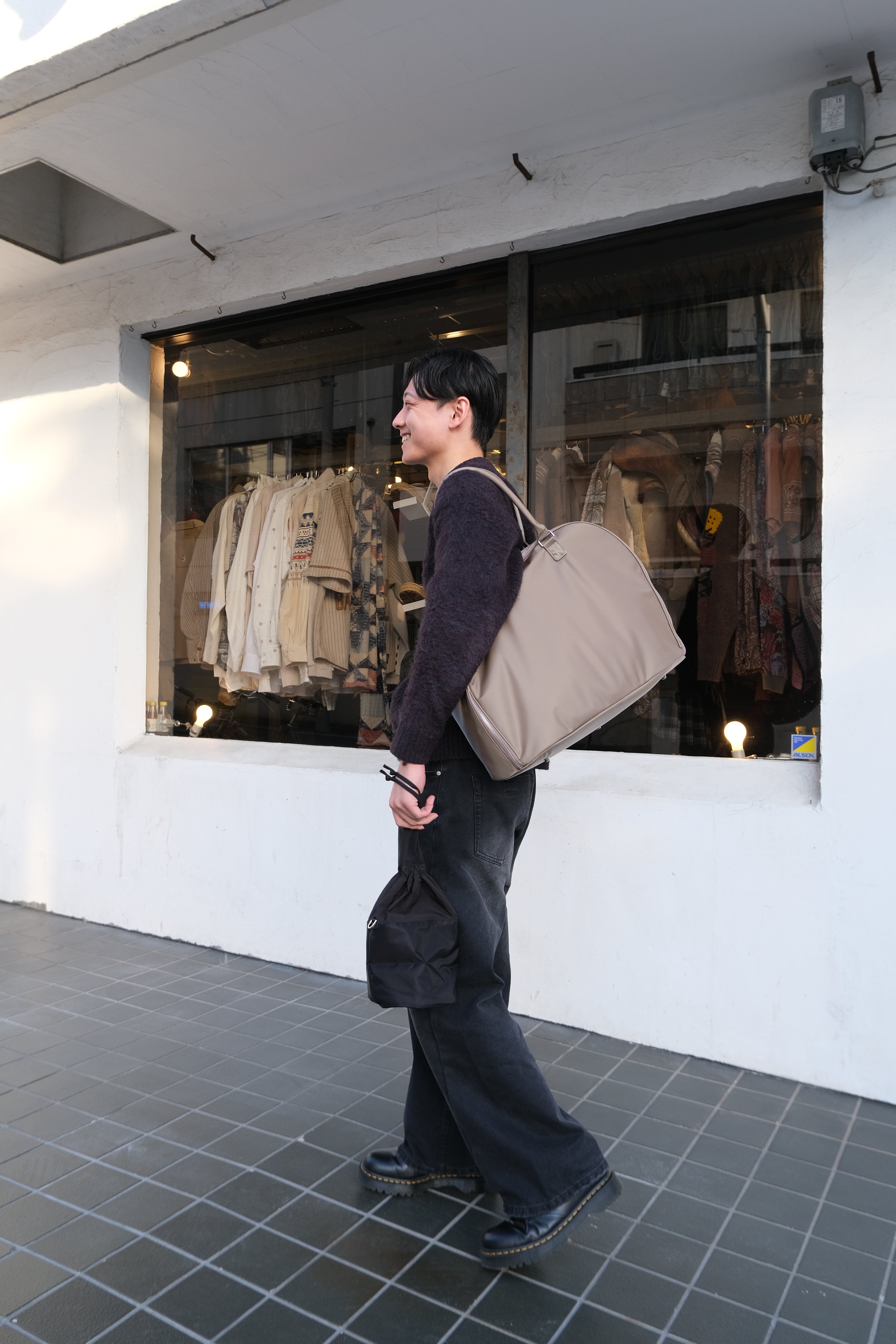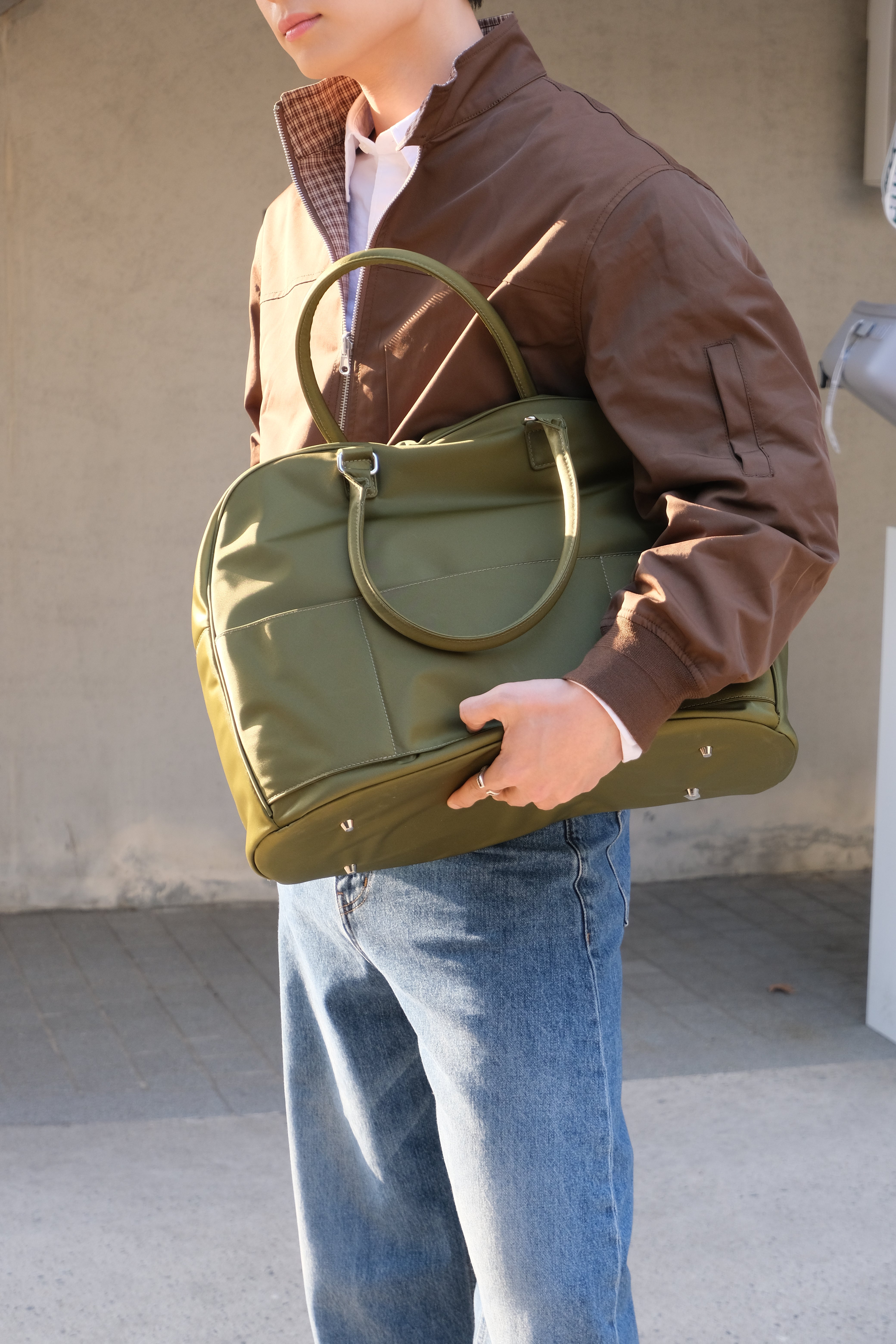 ハンドル接合部の補強金具により、重い荷物でも安心の耐久性を実現しました。長めのハンドル設計で、肩掛けスタイルでもストレスなくスマートに持ち運べます。