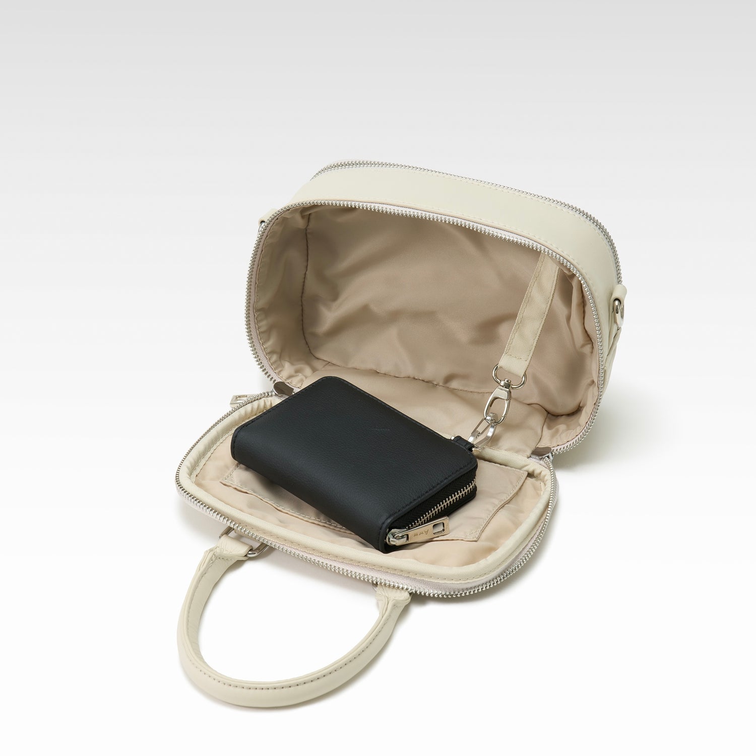 中を開くと7つのカードスペースとボックス型のコインスペースで、通貨や用途ごとにしっかりスペースを分けて管理ができます。お札は折らずにカードスペースの下を通せるので、効率的な収納も。本体はカラビナ付きなので、バッグやストラップに取り付けてより安全に持ち運べます。