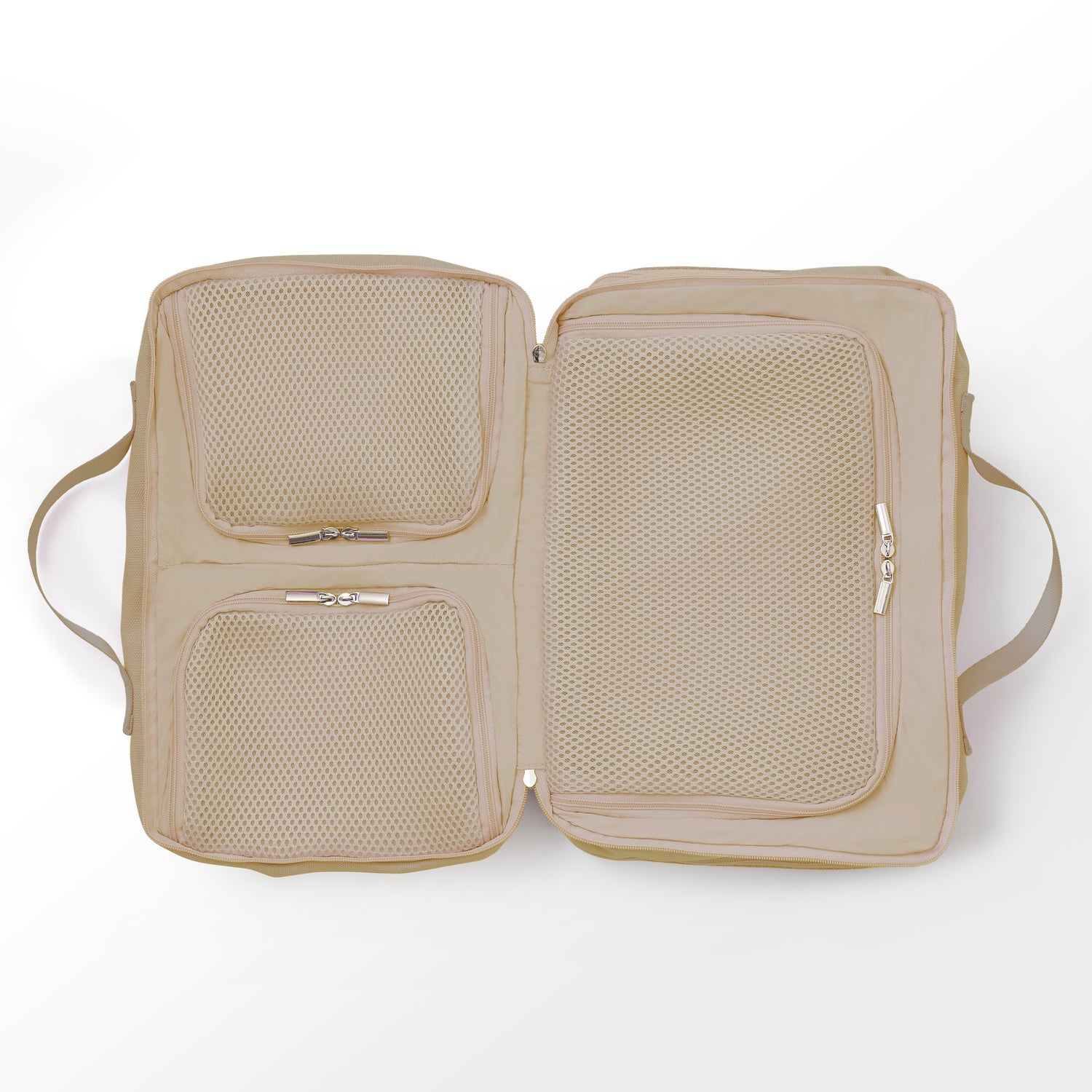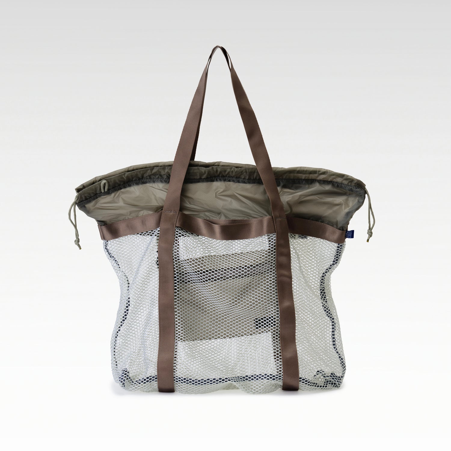 トートバッグは完全にフルオープンにすることができ、ビーチシーンやピクニックシーンなどで、ビーチマットやピクニックシートとしても使えます。別売りのメッシュバッグを中に取り付けることもでき、一緒に使えば中の荷物が溢れることもありません。
