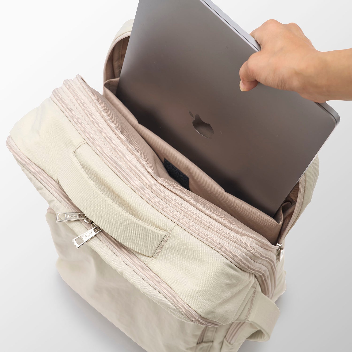 紐をポケット内に綺麗に隠すことができるので、バックパックとしてはもちろん、紐を隠して手持ちバックとしても使っていただけます。