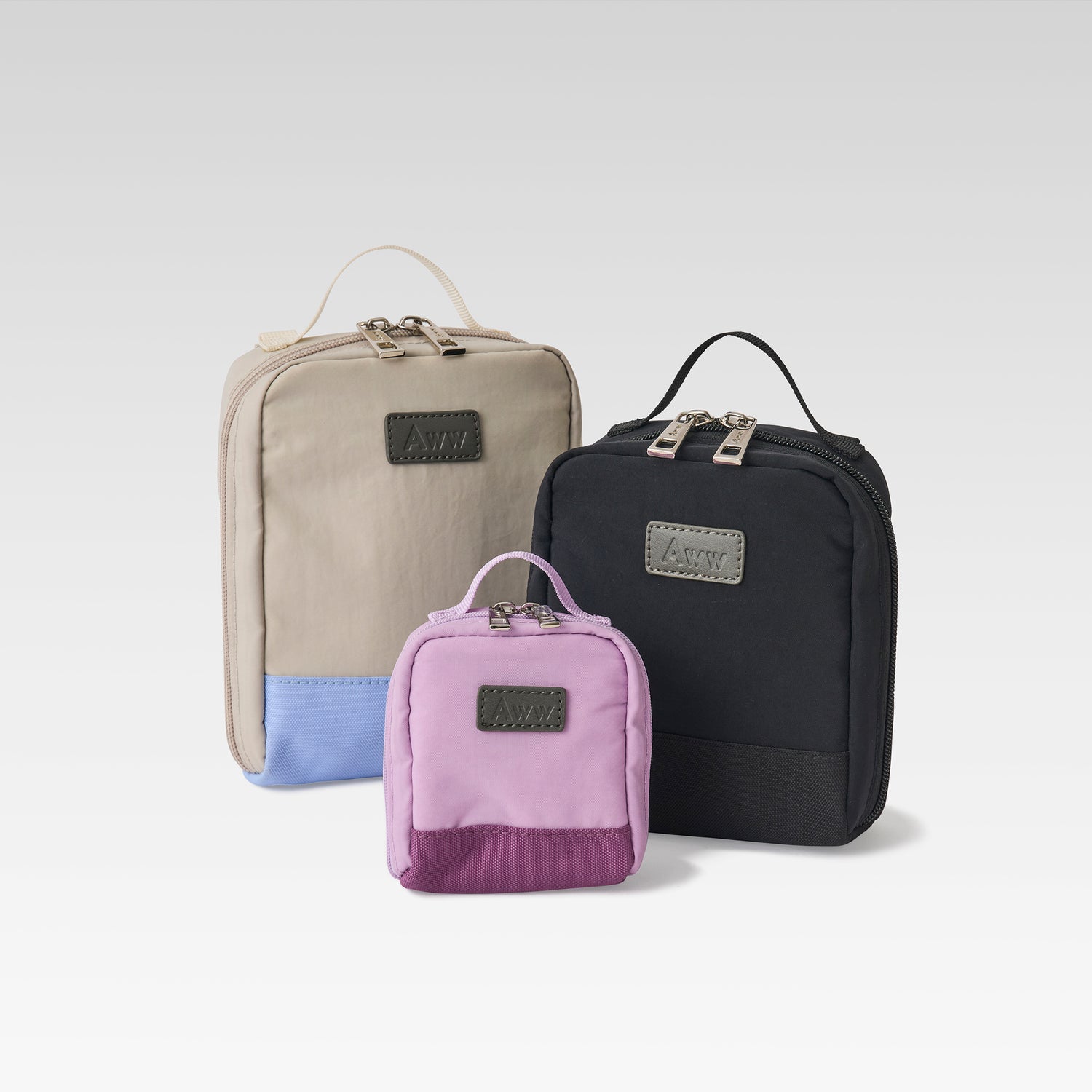 真ん中の収納はスーツケースのように180度開き、ゴムバンドで荷物をしっかり固定。衣類収納に最適で、Awwのパッキングキューブ(Sサイズ2つ / Lサイズ1つ)が収まる絶妙なサイズ感です。