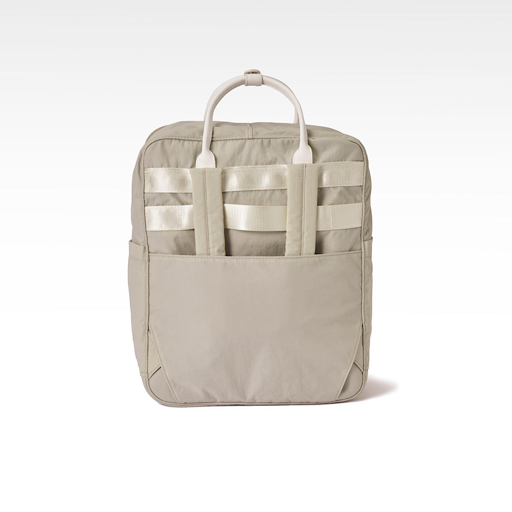 トートとしてもリュックとしても使える2way仕様!トートとして使用するときは紐を隠したい!というお声をいただき、ポケット内に紐を隠せるようにリニューアルしました。ビジネスシーンなどきちんとして見せたいときにもお使いいただけます。