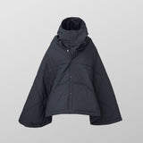 シンプルなケープとして。袖部分のスナップボタンをつければ、腕も通せます。