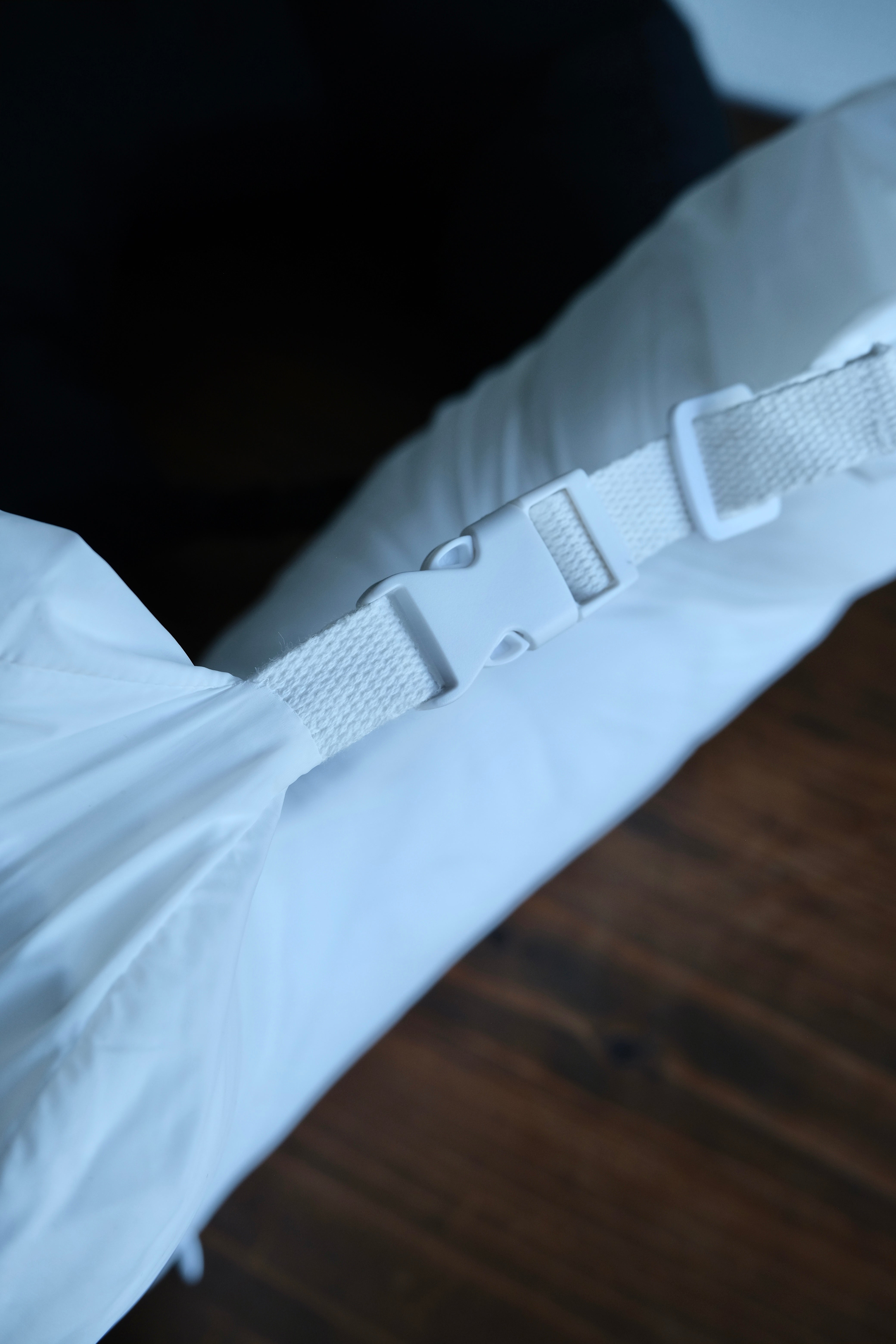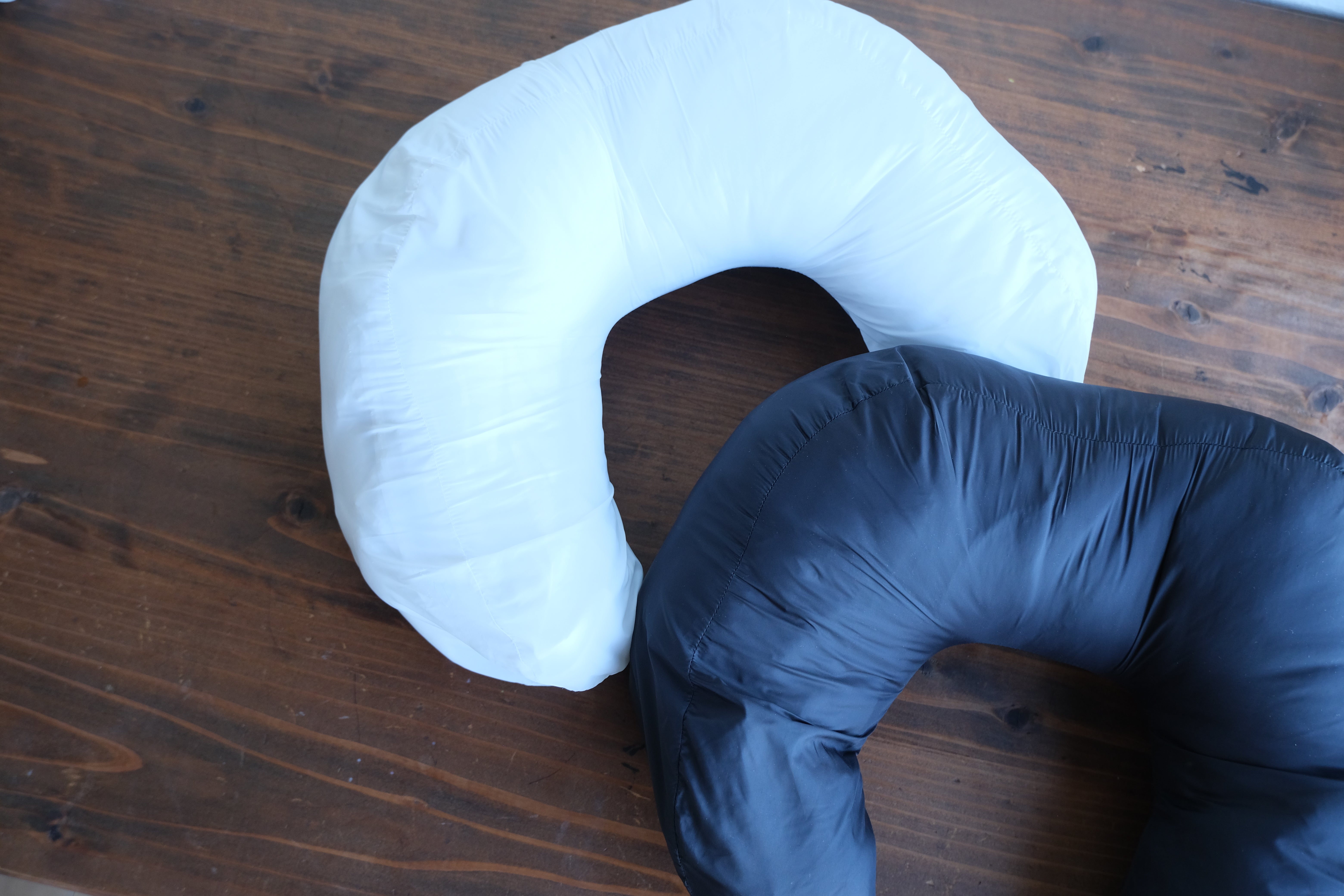 ネックピローの袋の長さに合わせてブランケットを3等分に折って入れれば、ネックピローに大変身!